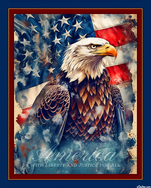 A Bald Eagle stands out in vivid detail against the American flag in this proudly patriotic panel. Digitally printed, 36" panel, 'Liberty and Justice'.