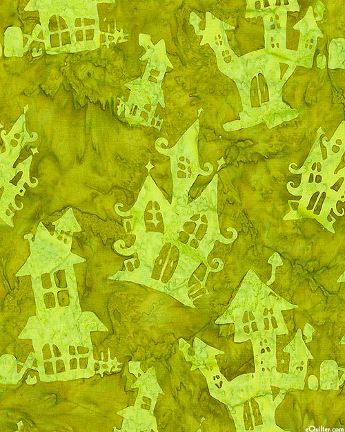 Batik, larger haunted houses are about 4-1/2", 'Haunted Houses' from the 'Tonga Haunted' collection by Timeless Treasures.