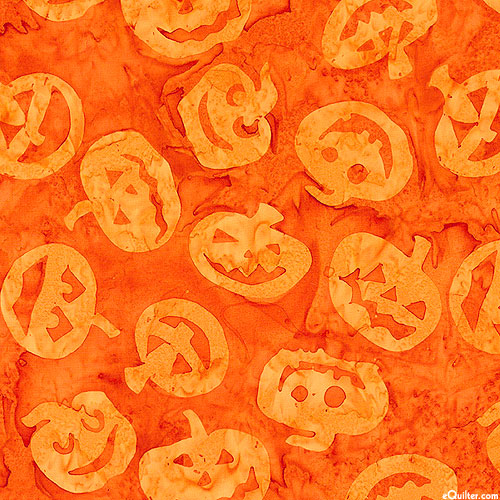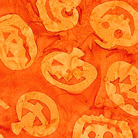 Batik, larger pumpkins are about 2-1/4", 'Jack O Lantern' from the 'Tonga Haunted' collection by Timeless Treasures.