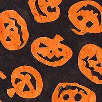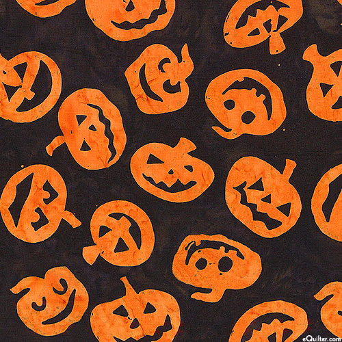 Batik, larger pumpkins are about 2-1/4", 'Jack O Lantern' from the 'Tonga Haunted' collection by Timeless Treasures.