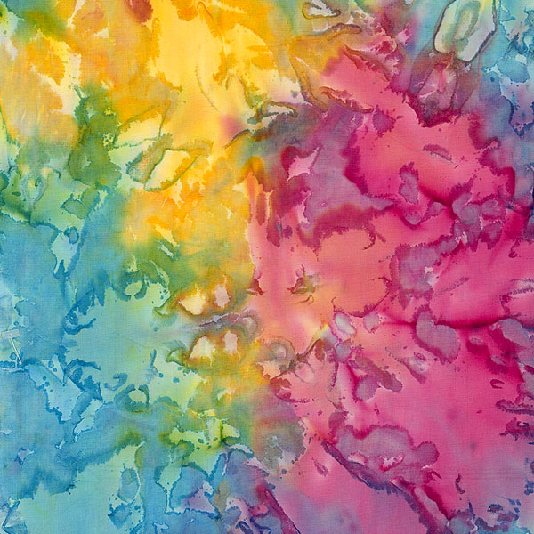 Sweeping painterly color lights up this marbled multi-colored hand-dye. Hand-dye, from Hoffman Fabrics.