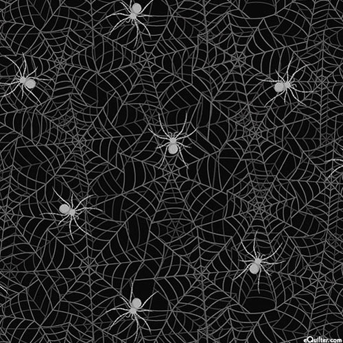 Spooky spiders crawl all over their webs in this fun and festive Halloween-themed tonal. Spiders are about 1-1/2", 'Raven Roost' from the 'Full Moon' collection by Whistler Studios for Windham Fabrics.