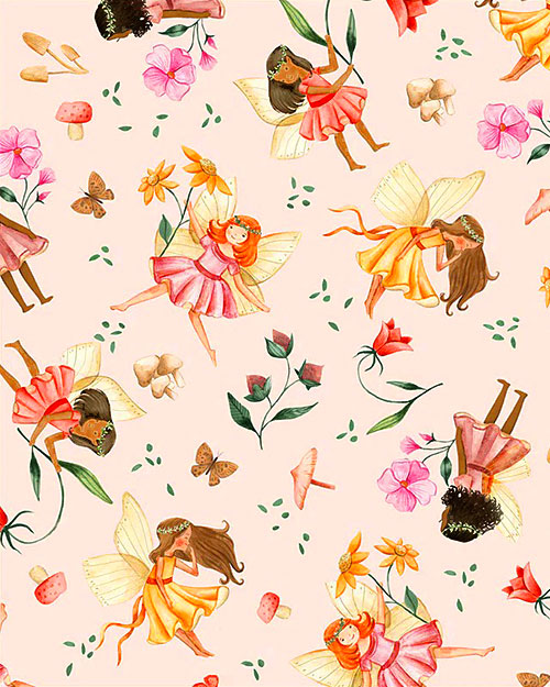 Magical fairies dance and play among the undergrowth of a forest with lush florals, charming mushrooms, and dainty butterflies fluttering in the space between. Flower Fairies are about 2-1/2", from the 'Petal Pixies' collection by Whistler Studios for Windham Fabrics.