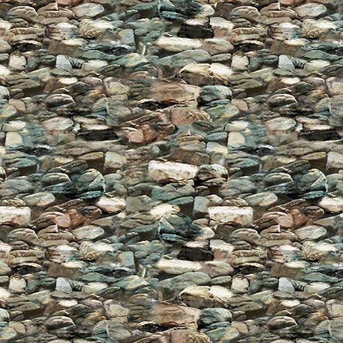 Small stones one might find in a riverbed lend an outdoorsy vibe to this charming design. Larger stones about 1" wide, from the 'Outdoor Adventure' collection by Whistler Studios for Windham Fabrics.