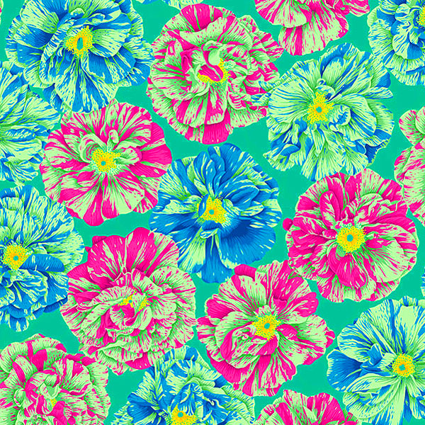 A lush landscape of flourishing flowers coalesce to create a captivating garden gala of texture and tone. Larger flowers are about 5-1/2", 'Bouffant' from the 'February 2026 Kaffe Fassett Collective' collection by Philip Jacobs for Free Spirit.
