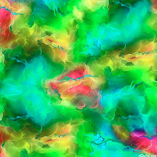 Cloudy textures ebb and flow across the design in a mesmerizing myriad of vividly mottled hues. Digitally printed, blender, from the 'Starburst' collection.