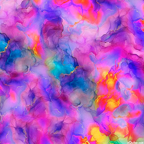 Cloudy textures ebb and flow across the design in a mesmerizing myriad of vividly mottled hues. Digitally printed, blender, from the 'Starburst' collection.