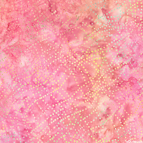 Dotted lines that ebb and flow into a net of wavy stripes are depicted in vivid hues within mottled batik textures. Batik, larger dots are about 1/8", 'Dot Wave' from the 'Bali Dot Craze' collection by Benartex Fabrics.