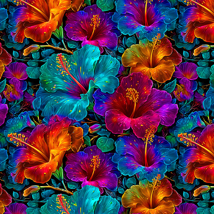 Luminescent hibiscus glowing softly under the gentle embrace of the moon lend a floral elegance to this charming design. 108" wide quilt backing, digitally printed, larger flowers are about 3-1/2", 'Luminescent Hibiscus' by the Rubin Design Studio, designed exclusively for eQuilter.