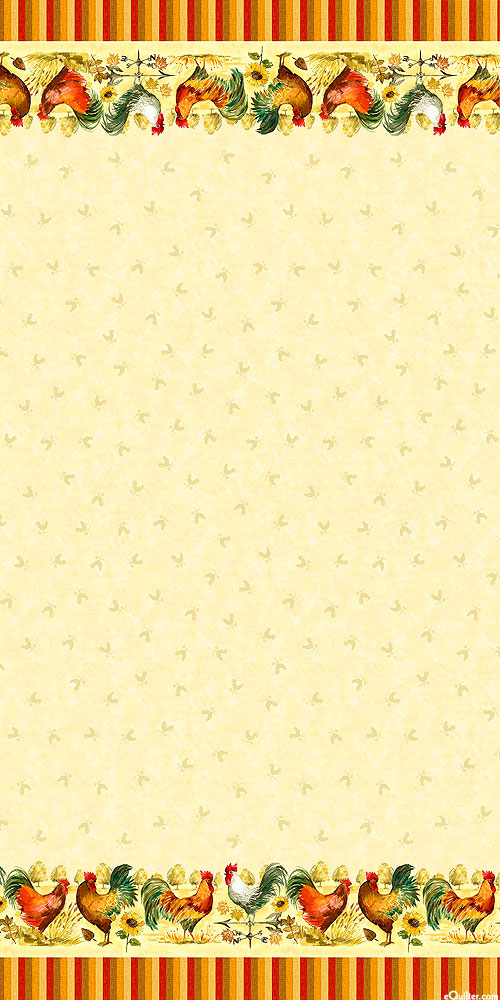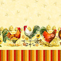 Chickens roosting in the countryside strut along the edges of this charming double border as small silhouettes of weather vanes are tossed in the space between. Digitally printed, double border stripe is at both selvedge edges, larger chickens are about 3-3/4", 'Harvest Lane' from the 'Harvest Farm' collection by Michael Miller Fabrics.