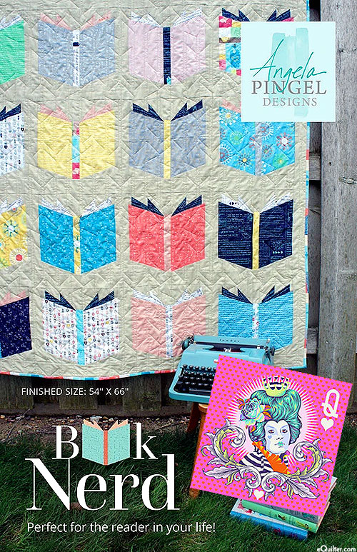 This literary pattern is the perfect match for Tula Pink's Curiouser and Curiouser collection! Choose these Alice in Wonderland prints, or others that spark your imagination, to sew up a fairy tale of a quilt. Great for an advanced beginner. Material requirements include: (20) Fat Quarters; 3/8 yd each of (3) text prints; 2 3/4 yds background; 1/2 binding; 4 yds backing; 2 yds 90" wide batting. 'Book Nerd' quilt pattern by Angela Pingel Designs. Finished size is about 54" x 66".