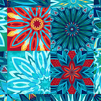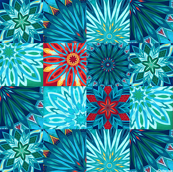 Assorted blocks contain a vibrant variety of beautiful mandalas, each showcasing unique geometric patterns that come to life in a dazzling display of colorful bliss. Mandala frames are about 4", 'Ornament Blocks' from the 'Nativity' collection by Alison McGarrigle for Northcott.