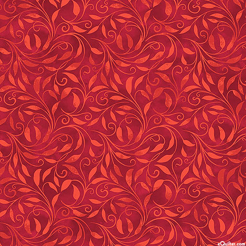Northcott Fabrics Nativity - Leafy Garden - Garnet Red