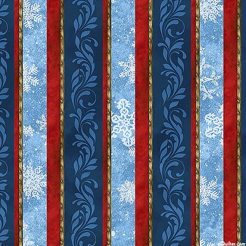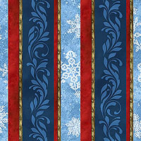 Layered stripes contain a merry myriad of festive motifs including scrolling leaves and charming snowflakes. Digitally printed, wider stripes are about 1-1/4", from the 'St. Nicholas' collection by Liz Goodrick-Dillon for Northcott Fabrics.