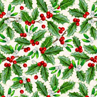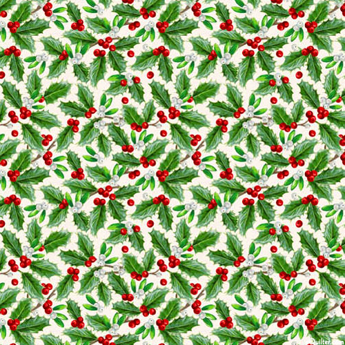 Digitally printed, holly leaves are about 5/8", from the 'Highland Heart' collection by Jason Kirk for Northcott.
