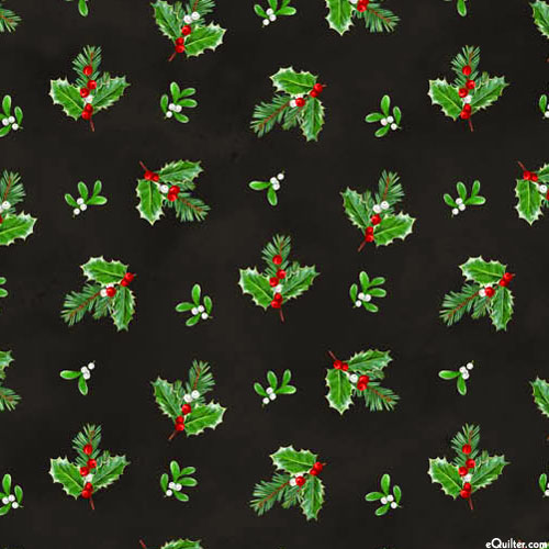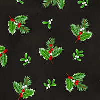 Digitally printed, holly branches are about 1", from the 'Highland Heart' collection by Jason Kirk for Northcott.