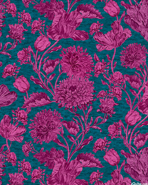 A lush landscape of flourishing flowers coalesce to create a captivating garden gala of texture and tone. Digitally printed, 'Burst of Flowers' from the 'Heritage Floral' collection by Bloomery Decor for Michael Miller Fabrics.