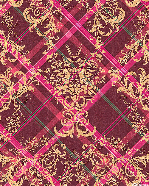 Regal florals stand out against a plaid background in this eye-catching print. Digitally printed, 'Plaid Damask' from the 'Heritage Floral' collection by Bloomery Decor for Michael Miller Fabrics.