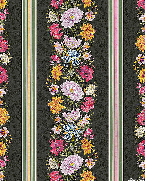 Lush florals bloom boldly between the layers of this stunning striped design. Digitally printed, 'Heritage Floral Stripe' from the 'Heritage Floral' collection by Bloomery Decor for Michael Miller Fabrics.