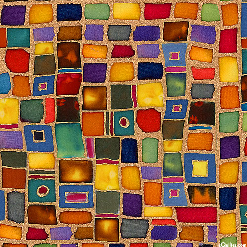 Abstract blocks contain a myriad of different watercolor textures depicted in a vibrant variety of vivid hues. From the 'Bear In Mind' collection by Nancy Dunlop Cawdrey for P&B Textiles.