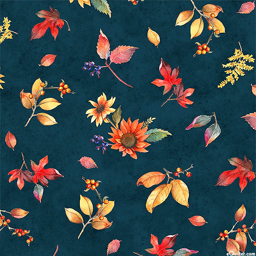 P&B Textiles Bountiful - Autumn Sprigs - Nautical Blue