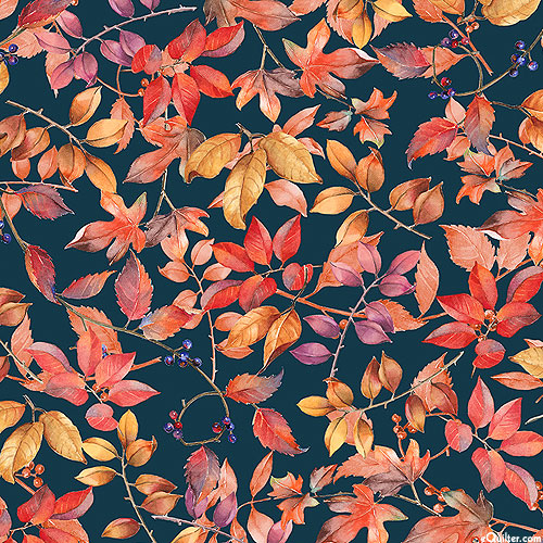 P&B Textiles Bountiful - Harvest Leaves - Midnight Blue