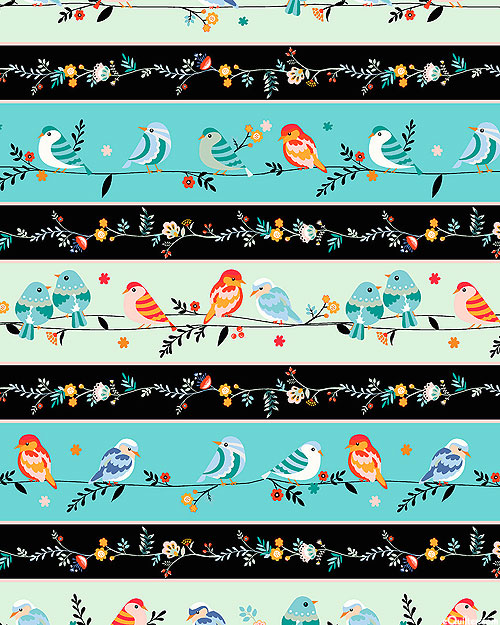 Small birds and butterflies flit between the leafy branches of the forest in an elegant expression of nature's charm. From the 'Birdsong' collection by Geeranjali Behera for P&B Textiles.