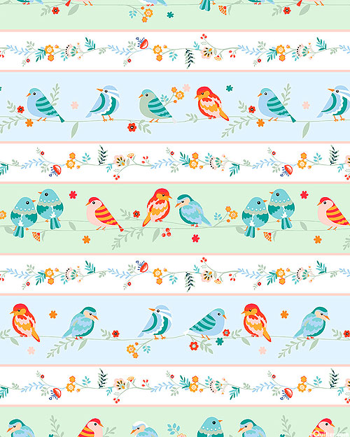 Small birds and butterflies flit between the leafy branches of the forest in an elegant expression of nature's charm. From the 'Birdsong' collection by Geeranjali Behera for P&B Textiles.
