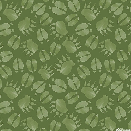 P&B Textiles Lodge Life - Paw & Hoof Prints - Leaf Green