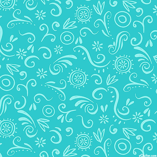 Leafy fronds and flowery shapes are tossed against a solid background in this charming garden tonal. From the 'Love, Teach, Inspire' collection by Arrolynn Welderhold for P&B Textiles.