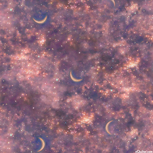 The curvy shapes of crescent moons emerge from between the shimmering starscape of a midnight sky in this beautiful blender. From the 'Starlit Night' collection by Kim Norlien for P&B Textiles.