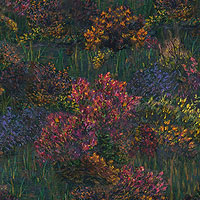 A lush landscape of flourishing flowers coalesce to create a captivating garden gala of texture and tone. From the 'Starlit Night' collection by Kim Norlien for P&B Textiles.