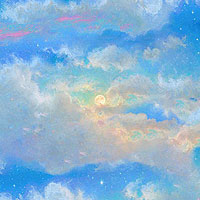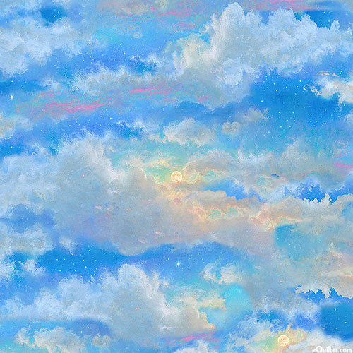 A full moon peeks out between the fluffy clouds hovering in the midnight sky. From the 'The Night Before Christmas' collection by Abraham Hunter, Courtesy of MHS Licensing, for P&B Textiles. For home sewing only, not for resale.