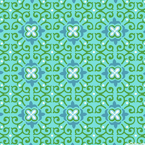 Quilting Treasures Paisley Punch - Tiled Medallions - Bahama Blue