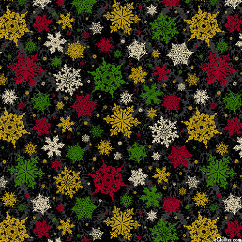 Quilting Treasures Poinsettia Greetings - Snowflakes - Black