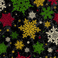 Small and dainty snowflakes fall gently through the air. Digitally printed, larger snowflakes are about 1-1/4", from the 'Poinsettia Greetings' collection by Tina Higgins for Quilting Treasures.