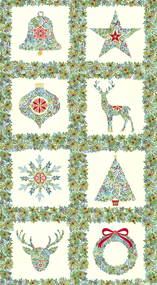 24" panel, frames are about 8-1/4", with gold metallic, from the 'Good Tidings' collection by The Henley Studio for Makower UK.