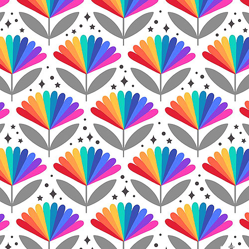 Radiant blossoms bursting into bloom in a rainbow of color and life are tossed all over this flowery fabric. Digitally printed, larger flowers are about 1-1/4", from the 'Over The Rainbow' collection by Lewis & Irene.