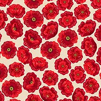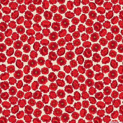 Lush poppy blossoms burst to life in a vibrant expression of nature's beauty across the design. Larger flowers are about 1/4", from the 'Poppies' collection by Lewis & Irene.