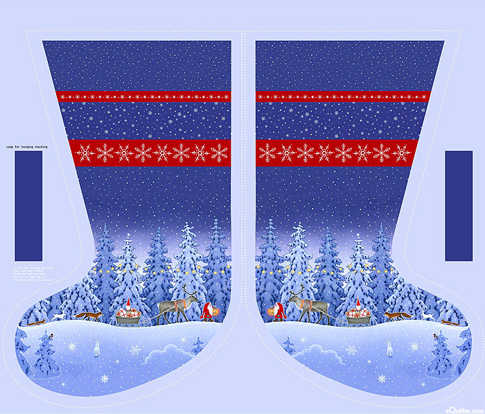 This large stocking is filled with stars and snowflakes as gnomes as their forest animals friends travel through the snow. 36" panel, from the 'Tomten's Christmas' collection by Lewis & Irene.