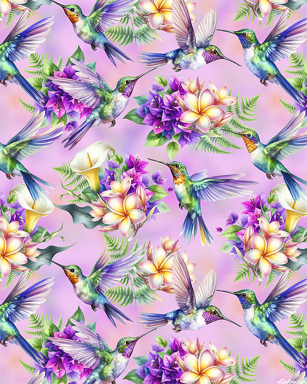 Digitally printed, larger hummingbirds are about 5-1/4", 'Hummingbirds' by David Textiles.