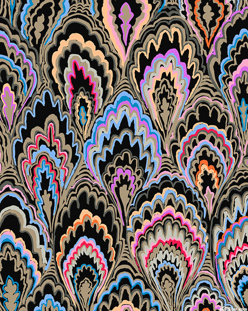 Wavy scallops ebb and flow across this delightful design. Taller scallops are about 8", 'Marble Scallops' from the 'Kaffe Fassett Collective February 2025' collection by Kaffe Fassett for Free Spirit.