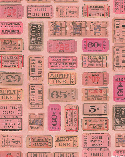 A vintage variety of tickets come together in a charming collage. Larger tickets are about 3-1/2", 'Pink Tickets' from the 'Tim Holtz Palette Pink' collection by Tim Holtz for Free Spirit.