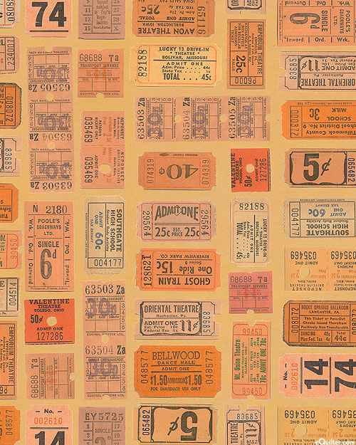 A vintage variety of tickets come together in a charming collage. Larger tickets are about 2-3/4", 'Orange Tickets' from the 'Tim Holtz Palette Orange' collection by Tim Holtz for Free Spirit.