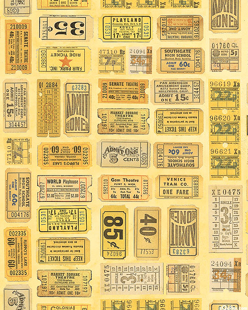 A vintage variety of tickets come together in a charming collage. Larger tickets are about 2-3/4", 'Yellow Tickets' from the 'Tim Holtz Palette Yellow' collection by Tim Holtz for Free Spirit.