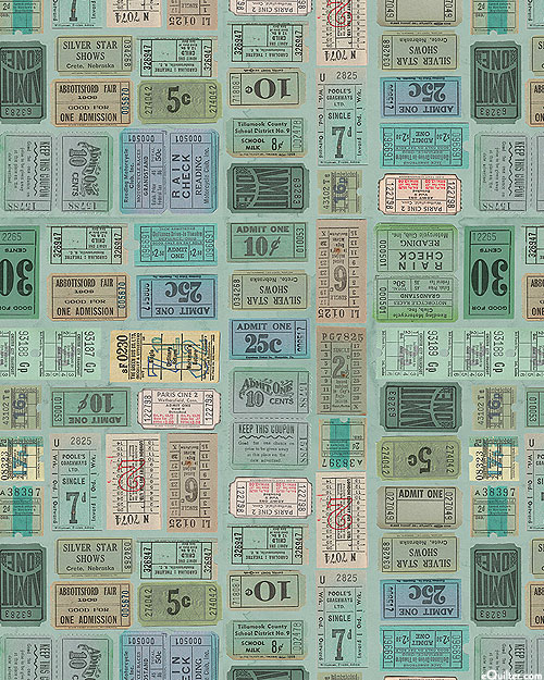 A vintage variety of tickets come together in a charming collage. Larger tickets are about 3-1/2", 'Teal Tickets' from the 'Tim Holtz Palette Teal' collection by Tim Holtz for Free Spirit.