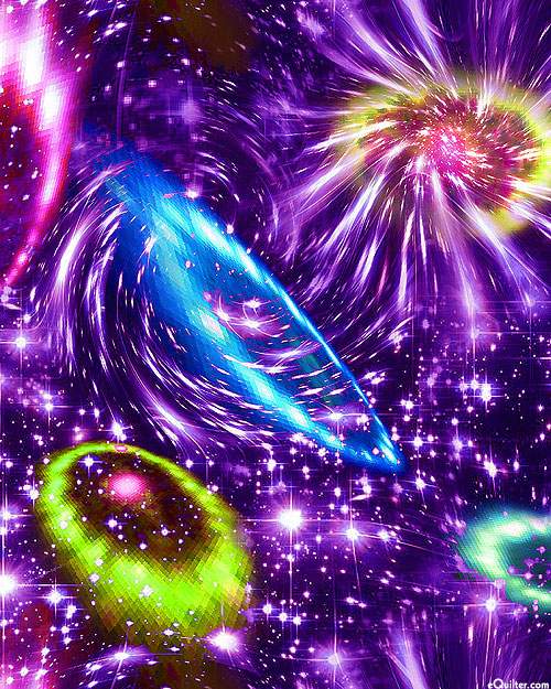 The colors of the cosmos distort and bend as black holes warp the very fabric of the universe. Digitally printed, from the 'Galaxy' collection by Oasis Fabrics.