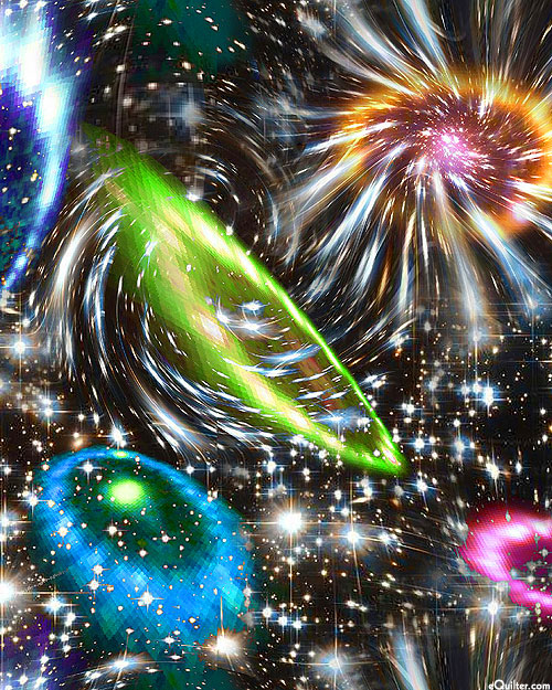 The colors of the cosmos distort and bend as black holes warp the very fabric of the universe. Digitally printed, from the 'Galaxy' collection by Oasis Fabrics.