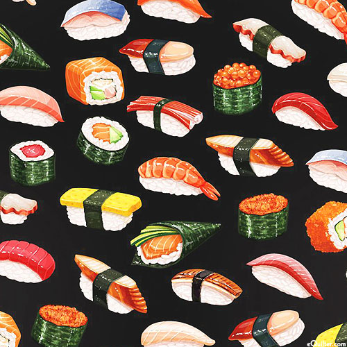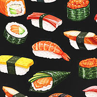 Digitally printed, larger sushi is about 1", 'Sushi'.