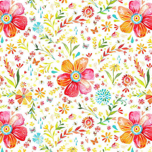 A lush landscape of flourishing flowers coalesce to create a captivating garden gala of texture and tone. Larger flowers are about 3", 'Posies' from the 'A Prairie Heart' collection by Katie Daisy for Benartex Fabrics.